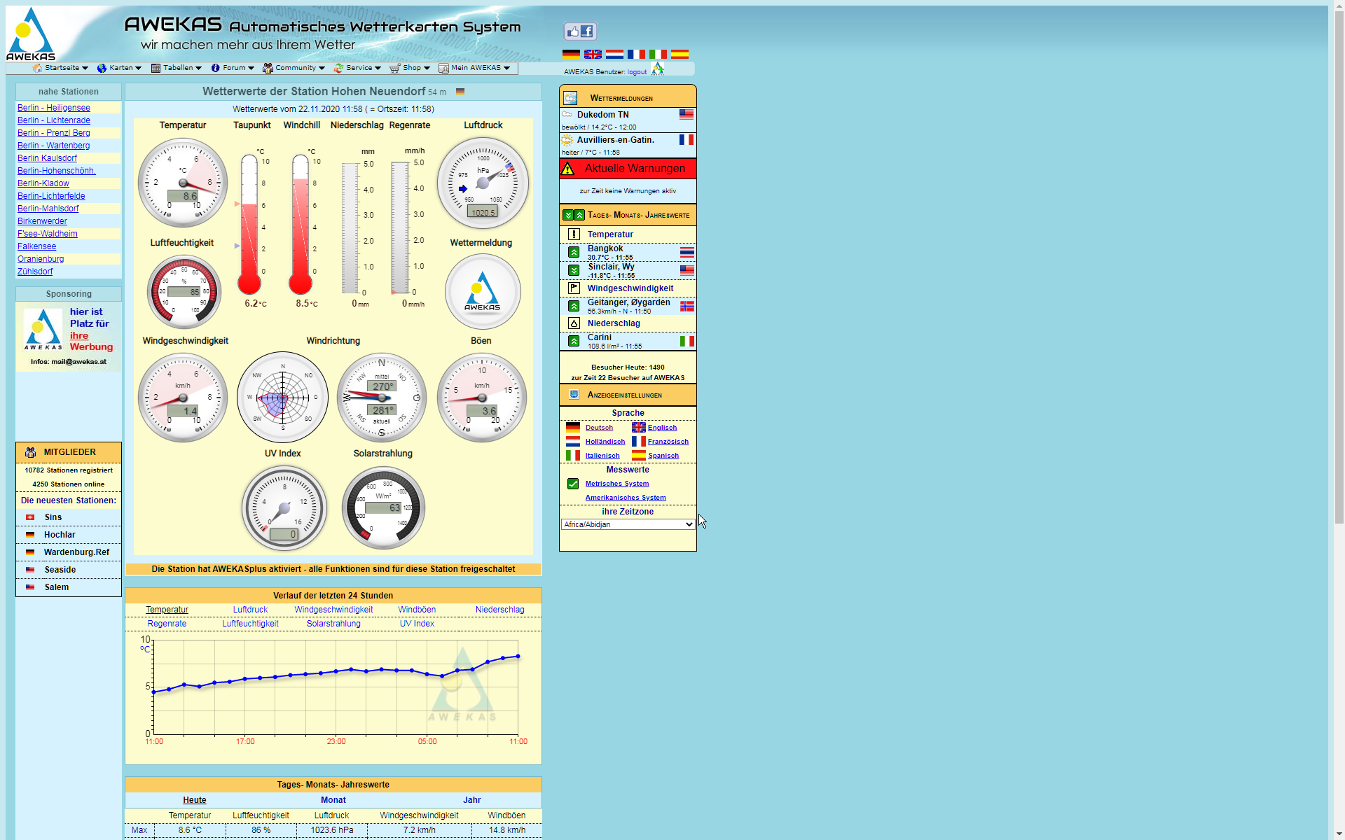 Awekas vereinfacht den Vergleich zu Wetterstationen ungemein. Man kann seine eigenen Daten mit den Durchschnittsdaten der umliegenden Stationen in auswählbaren Umkreis vergleichen.