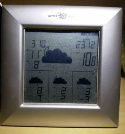 * 'Digitale Wetterstation' (elektronisch) mit Sensoren für die entsprechenden Größen