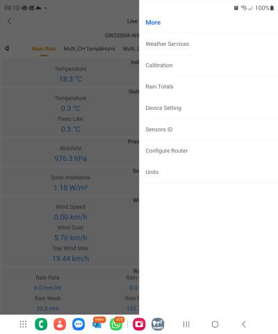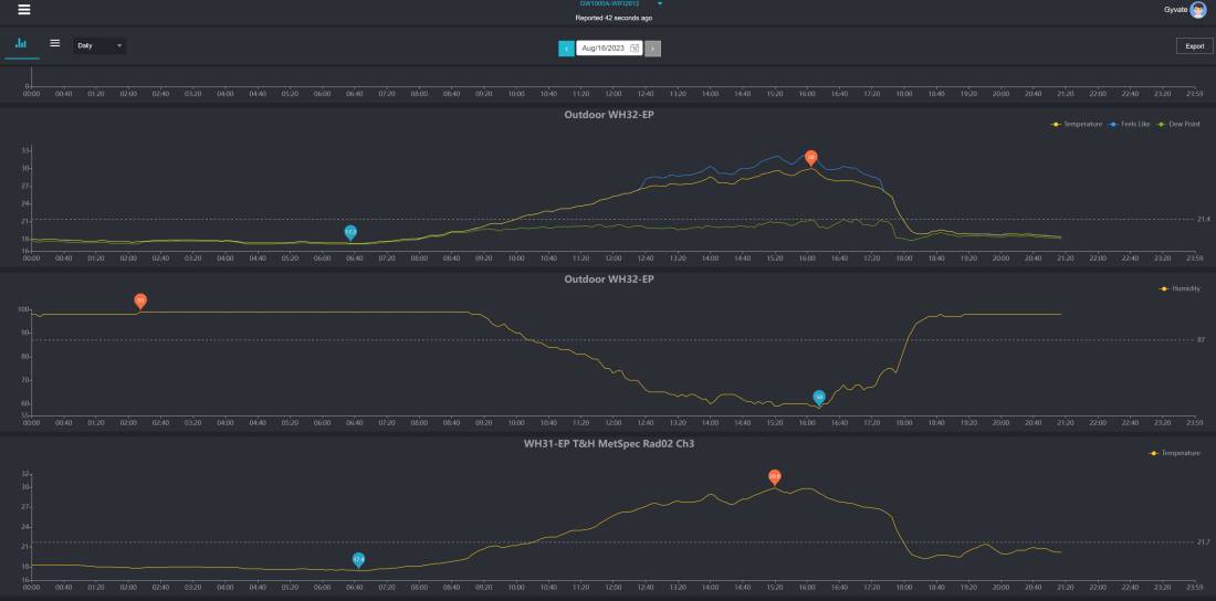 - die GW1100-Innentemperatur, Luftfeuchte und der absolute und relative Druck