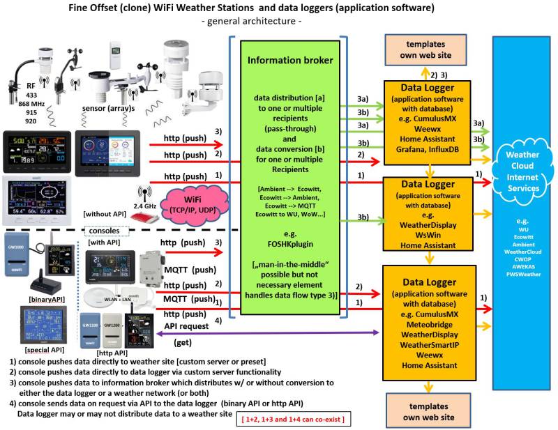(CumulusMX, Meteobridge, Weather Display und weewx haben Treiber oder eingebaute Softwareteile, die das Ecowitt Gateway API abfragen und die API-Antwort empfangen und verarbeiten können)