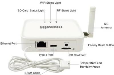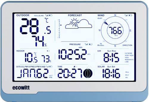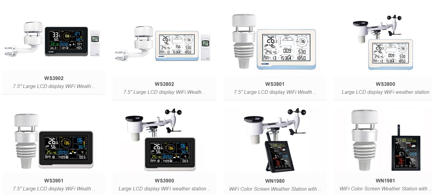 - GW2000 (IoT fähig, WLAN + LAN Schnittstelle, wird zusammen mit dem Ecowitt WS90 Outdoor Array als GW2001 Station verkauft, auch als einzelnes Gateway/Konsole erhältlich)