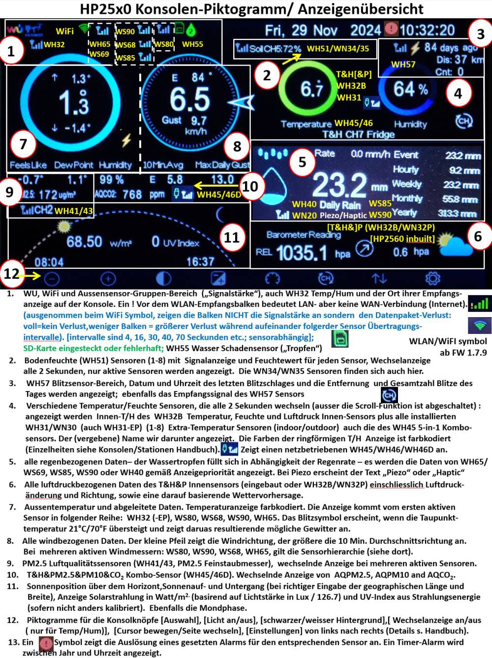• HP2552* = HP2551 Konsole + WS68 Ausseneinheit + WH40 Regenmesser + WH32 Aussensensor + WH32B Innensensor (Froggit HP1000SE Pro Single Sensor)