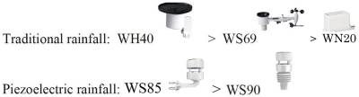 - WH2685 (hauptsächlich als Ambient ObserverIP 2.0-Modul verkauft - es gelten die Einschränkungen der Firma Ambient (der WH2685 kann nur Ambientsensoren empfangen), auch wenn ein GW1100/GW2000 ohne seine Innen-T/H-Sensoren als WH2685 ohne die Umgebungseinschränkungen fungieren würde)