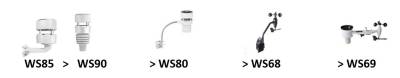 - 1 WS90 mit Piezo-Regendaten (Piezo-Regendaten müssen separat mit dem Befehl CMD_READ_RAIN abgerufen werden, welcher allerdings auch die traditionellen Regendaten bereitstellt)