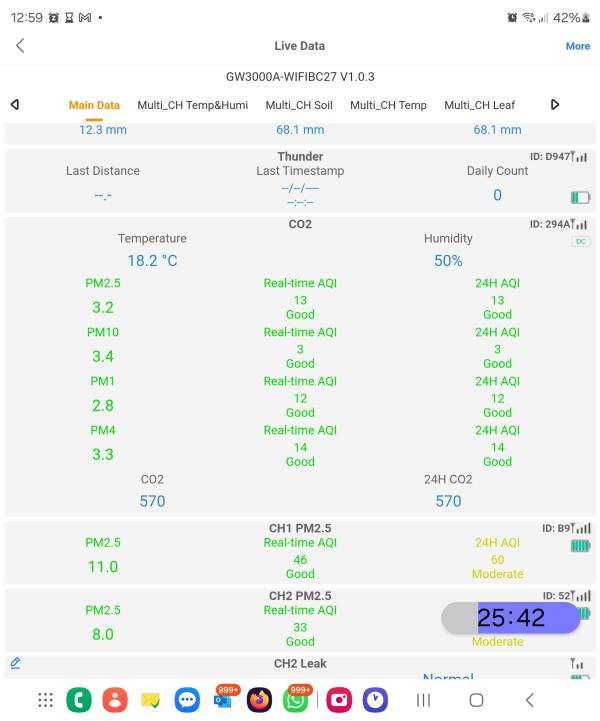 - 1 WH45 mit PM2.5, PM10, CO2-Daten (aktuell und 24h) plus WH45 temp/hum
