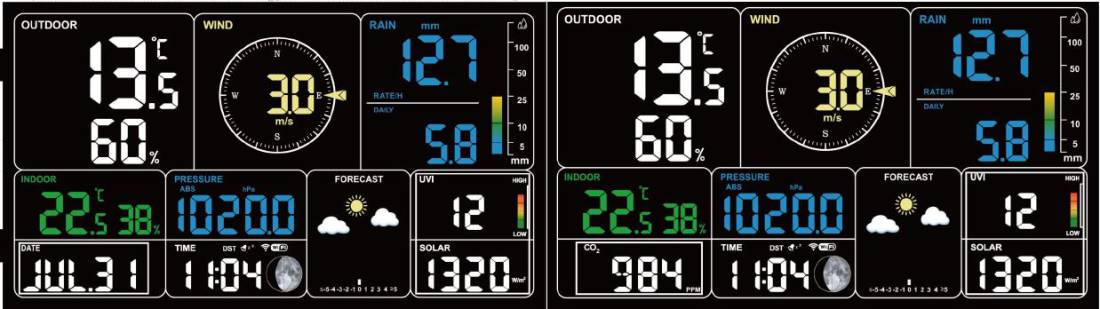 • WS3802 = WS3800 Konsole + WS85 3-in-1 Regen & Wind Sensor + WH32 outdoor
