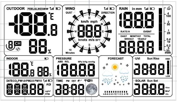 • HP2564 = HP2560 Konsole + WS90 (Wittboy 7-in-1 Aussenkombisensor) (Froggit HP2000 Ultra 7-in-1) - auch Sygonix SY-5479628 bei Conrad
