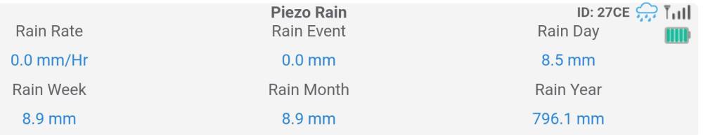 Mit dem Befehl (Kommando) CMD_READ_RAIN können alle Regendaten der angeschlossenen Regenmesser (maximal ein traditioneller [WH40 oder WS69] und ein Piezo-Regenmesser [WS90]) abgerufen werden